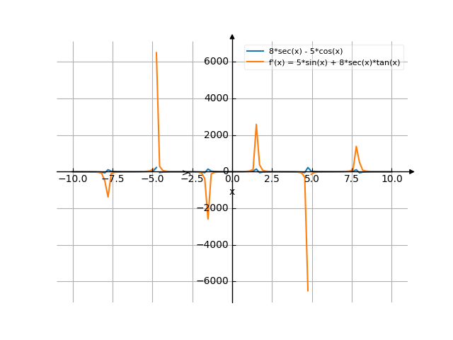 2 / 2 \ 5*cos(x) + 8*tan (x)*sec(x) + 8*\1 + tan (x)/*sec(x)