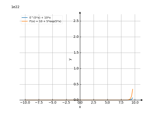 d / 5*x \ --\e + 10*x/ dx