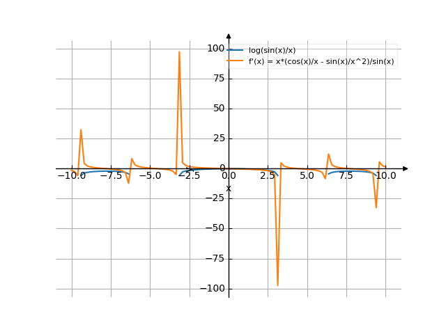 d / /sin(x)\\ --|log|------|| dx\ \ x //