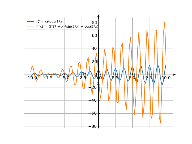 d --((7 + x)*cos(5*x)) dx