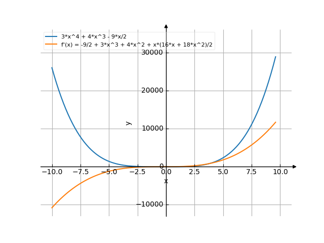 d / 4 3 9*x\ --|3*x + 4*x - ---| dx\ 2 /