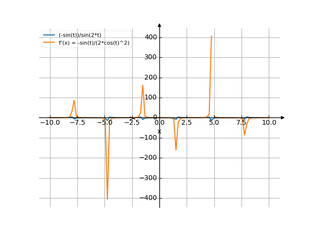 d /-sin(t) \ --|--------| dt\sin(2*t)/